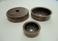 ●椀革・・・革を溶かしたロウに浸し型にはめて製作します。 |